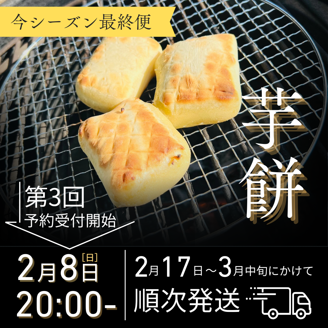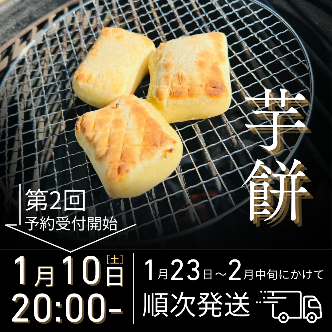 大変お待たせいたしました。今季の芋餅は1月10日から予約受付開始、23日から発送となります。