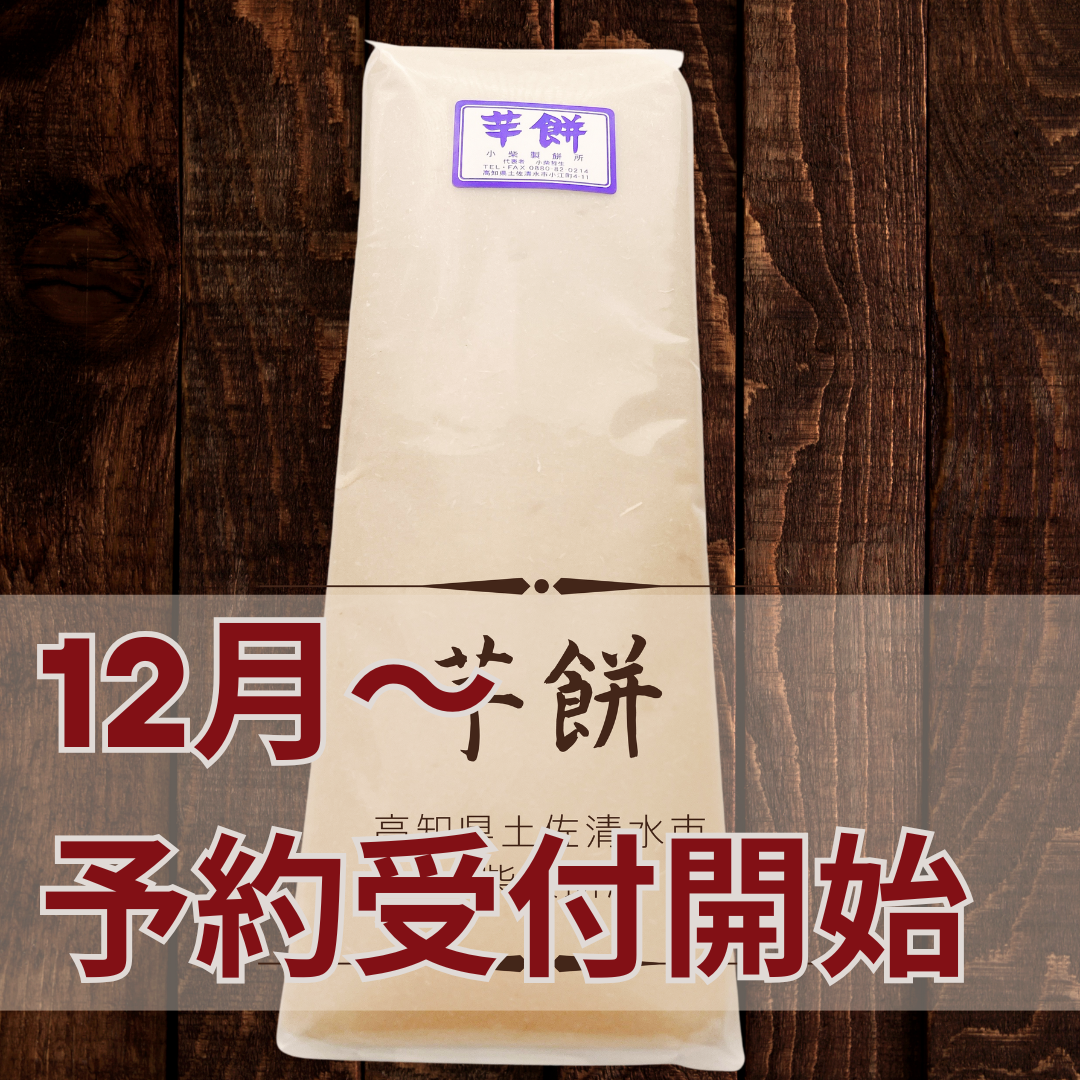 お待たせいたしました。今季の芋餅は12月から予約受付開始、中旬以降の発送となります。